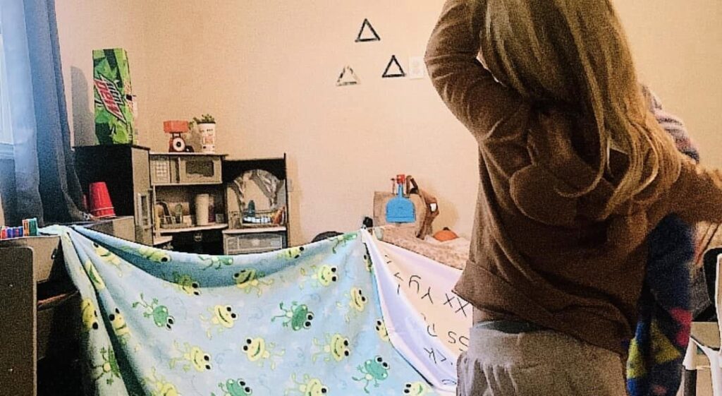 One thing I make sure to do every single day is to ask each child “what do you want to do today?” and ensure to honor that want. Whether that be something as simple as coloring a picture or something a little more complicated like going to the Zoo. (I should mention that we do use a TV for virtual field trips) We also encourage children to take pride in all of their accomplishments. Some ways we do this is by displaying our art on our classroom walls or sending pictures of our huge fort to mom & dad. Additionally, Children are encouraged to recognize their emotions and use our emotion puppets to act out their big feelings. Doing this promotes the child’s ability to feel confident in their emotions and their actions. Additionally, children that are struggling with a big emotions are directed towards healthy coping alternatives. Such as reading a book or completing a puzzle.